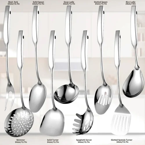 🥄 Juego de Utensilios de Cocina de Acero Inoxidable – Set de 9 Piezas (Color Plateado)