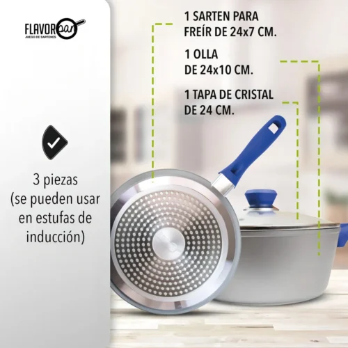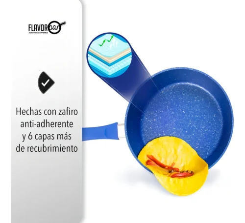 Set de 2 Sartenes de Zafiro con Tapa Flavor Pan – Antiadherentes y Aptos para Inducción